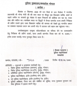 हम बात कर रहे हैं धामनोद टीआई प्रवीण ठाकरे की जिनकी इस तस्वीर ने सोश्यल मीडिया पर काफी प्रशंसा बटोरी है। उनके इस काम की तारीफ मध्यप्रदेश के डीजीपी कैलाश मकवाना को भी करनी पड़ी डीजीपी ने धामनोद टीआई प्रवीण ठाकरे को पांच हजार रुपये का इनाम देने की घोषणा की ओर उनके इस काम की तस्वीरे एक्स पर पोस्ट भी की है।